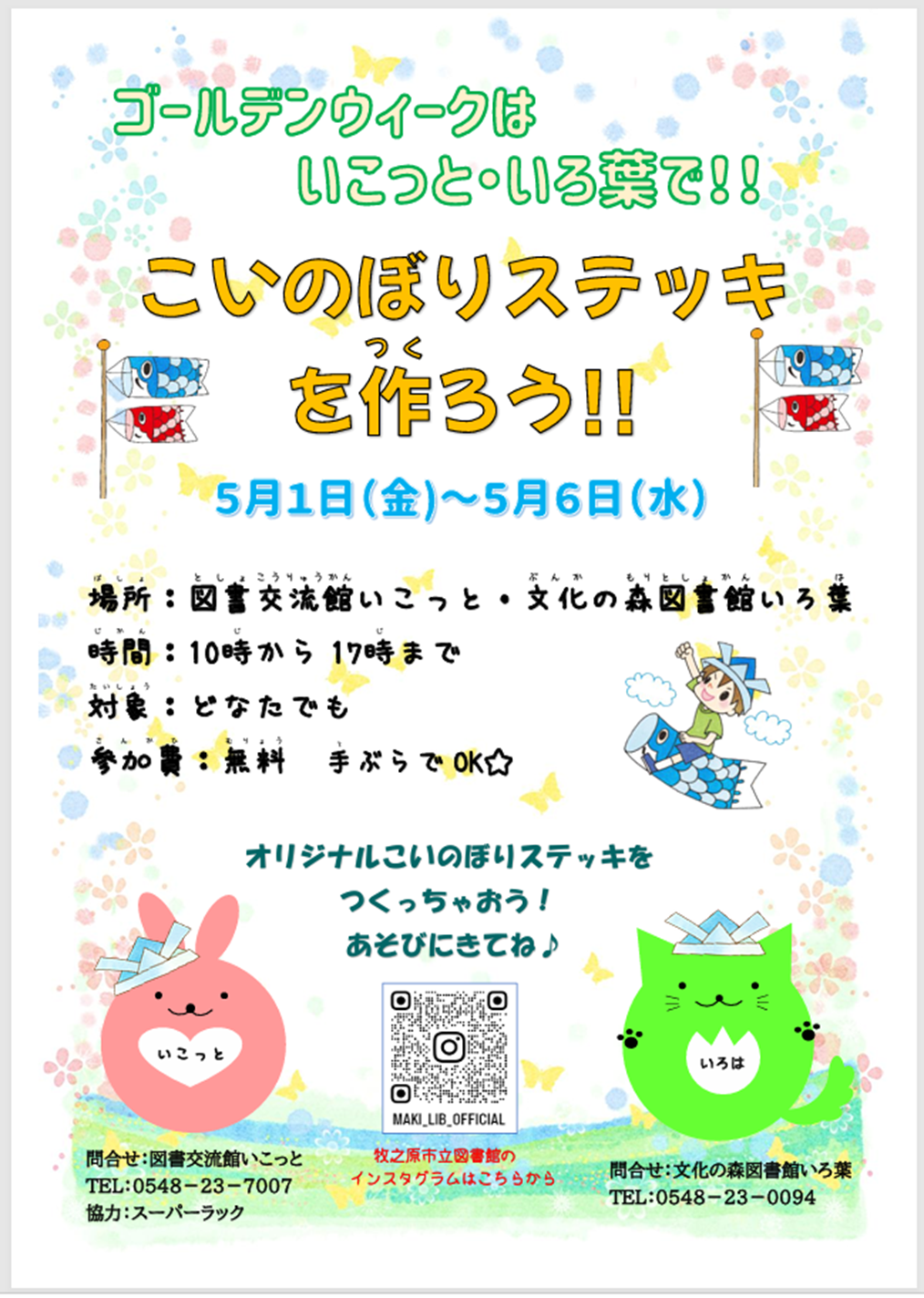 【いこっと・いろ葉】こいのぼりステッキを作ろう!!